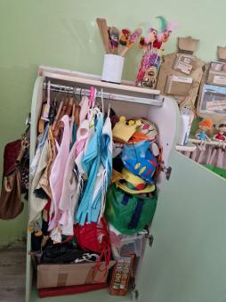 Уголок театрализованной деятельности - ширма, костюмы, очки и др.