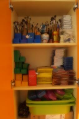 Кабинет оснащен конструкторами, различными красками, разного вида бумаги и др. Имеется выставка фигурок дымковской, филимоновской и др. росписи; выставка декоративно-прикладного искусства.