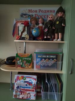 Уголок гражданско - патриотического воспитания - обучающие карточки «Символы России», обучающие карточки «Российская Армия», обучающие карточки «Достопримечательности России», обучающие карточки «Города России» и др.