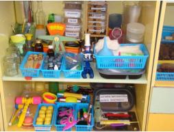 Уголок детского экспериментирования - мерные ложки, шарики из разного материала, трубочки для коктейля (набор), воронки (набор), песок, глина, мыло и др.